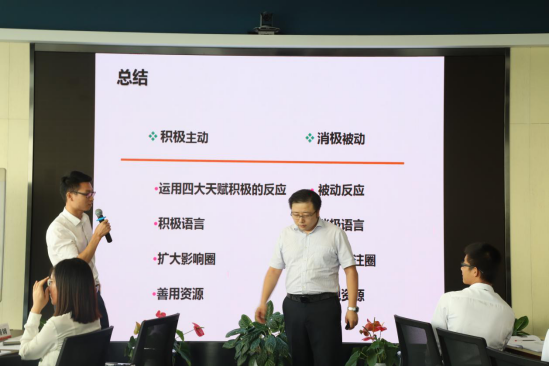 培訓期間,馮南石講師通過華為、中興、騰訊等具體案例分析,自身經(jīng)歷分享、剖析,現(xiàn)場問答互動、視頻、做手指操、小組積分、冠軍組發(fā)放獎品等方式,全面、系統(tǒng)、深刻地講授了養(yǎng)成高效能人士的七個習慣,通過改變自我習慣不斷提高快速解決問題的能力?,F(xiàn)場氛圍輕松和諧,學員熱情高漲,聚精會神聆聽講課內(nèi)容,積極主動參與小組討論、答題、項目活動。